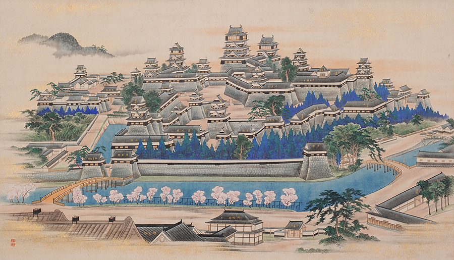 本展では熊本のさらなる復興を祈念し、熊本城の具体像を示す様々な記述が見られる「細川家文書」に加えて、熊本城の本丸御殿を飾った可能性のある《老松牡丹図屏風》、加藤清正所用と伝わる《桔梗折墨紋蒔絵湯桶》や《菊桐紋散蒔絵螺鈿徳利》など、ゆかりの美術工芸品をとおして、細川家の視点から熊本城の歴史をたどる。