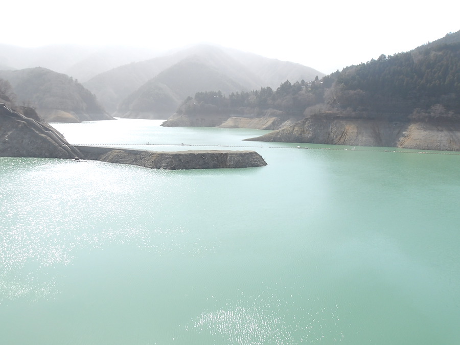 2月末の週末、曲がりくねった山道をツーリングのバイクが次々走り抜け、ダム事務所や都の広報施設、食堂などがある一角で、休憩するライダーや家族連れの観光客などが湖畔の風に身を委ねていた。