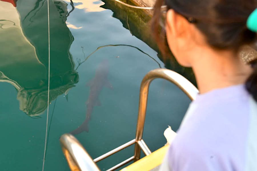 もう一つは、シロワニと私たちがどう付き合っていくべきなのか考える良い機会になったということ。岸壁からシロワニを観察するのは、私たち「サメサメキッズ・シロワニ調査隊」だけではない。観光客も、島民もそこではみんなが海の中をのぞき込む。サメの 観察の仕方やサメとの距離感は様々だ。