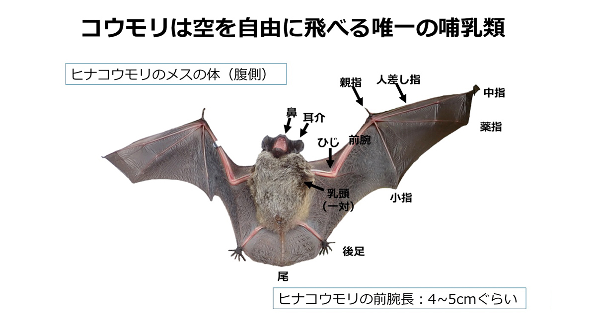 ――コウモリは、生態があまりよく知られていない生き物のひとつです。翼があるため、哺乳類ではなく鳥類と思っている人もいそうですね。