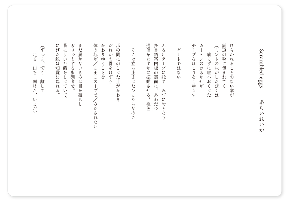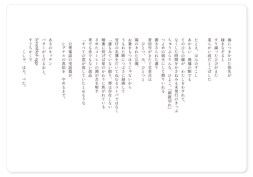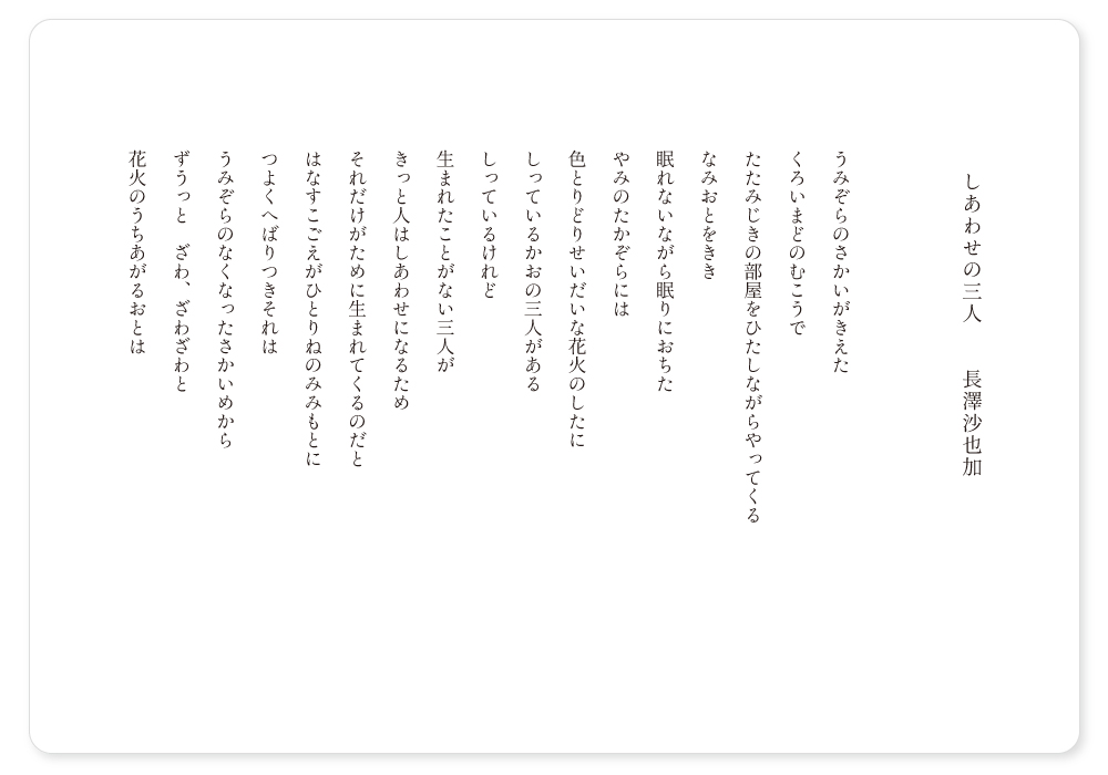 「投稿の広場」は、詩の投稿を募り、その一部をご紹介するコーナーです。選者は「詩のとびら」の著者である詩人のマーサ・ナカムラさん。今回は2025年7月11日から8月12日の募集期間に投稿された四十二篇の中から選考を行い、マーサさんから講評をいただきました。 今回は応募多数につき、二篇ご投稿いただいた方は一篇のみの講評(佳作は除く)となります。