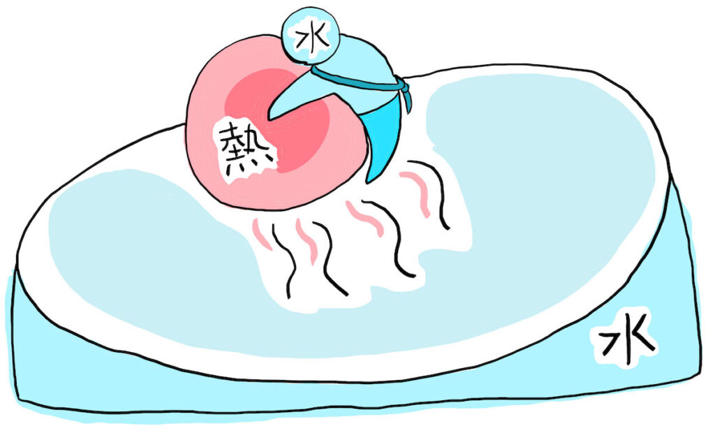 「表面の水が空気に飛び出すとき、気化熱って形で熱を抱えたまま空へ走っていく。つまり、水は熱の駅伝のランナーなんだ」