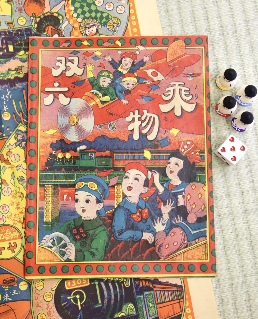 双六遊びの歴史はとても古く、起源は明確になっていない。日本で双六と呼ばれる遊戯には2種類の遊び方があり、ひとつは盤雙六[ばんすごろく]と呼ばれる。盤雙六は、西洋のバックギャモンと同様に2個のサイコロを用い、対局者2人がそれぞれ15個の持ち駒を駆使して勝敗を競う遊戯である。正倉院には奈良時代の聖武天皇の遺品の双六盤が収められている。