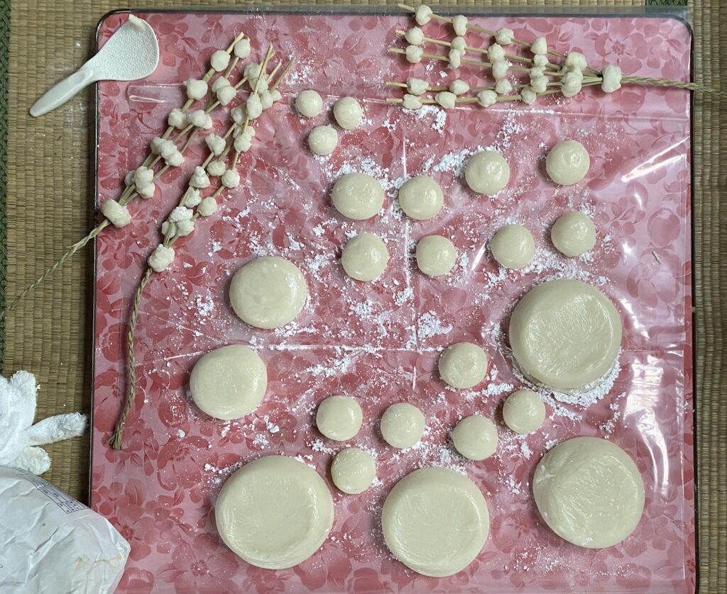 正月様をお迎えする準備だ。煤払いのための藁箒を作ってお掃除し、餅米を研いで浸水させる。「イタダキ」と呼ばれる、ちょっと変わった形の鏡餅などを作るためだ。煮豆や塩蔵の山菜キノコ類を塩出ししたり、と急に大忙しになった。正月モードだと水あげ(各家々の仏壇への挨拶回り)の来客もあるということだから、お酒やおかずの用意もしなくては。母ちゃん(義母)もエンジンフル回転の正月モードになっているから頼もしい。