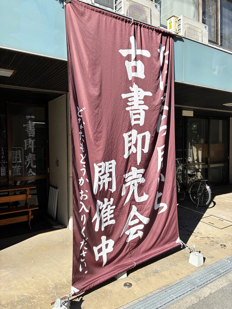 私は関西在住歴32年で、現在68歳だから、東京の方が長くなってしまった。それでも大阪へ行けば、大阪人の血は騒ぐ。大阪市中央区の谷町六丁目駅近くにある大阪古書会館は訪れるのも初めて。私が関西在住の頃にもあったが、一般客向けの即売会はなかったのである。かなり年数を経た鉄筋のビル入口に、大きな垂れ幕がかかっている。