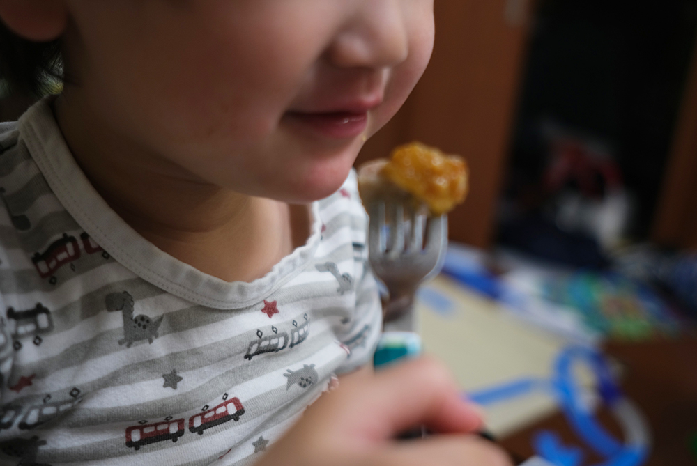 二歳になった昨年くらいから、私たちと同じ物を食べるようになった。以前は、妻と食べたい物をすりあわせて、麻婆豆腐やパエリア、ビーフシチュー、モツ煮、肉や魚のトマト煮などをつくっていた。