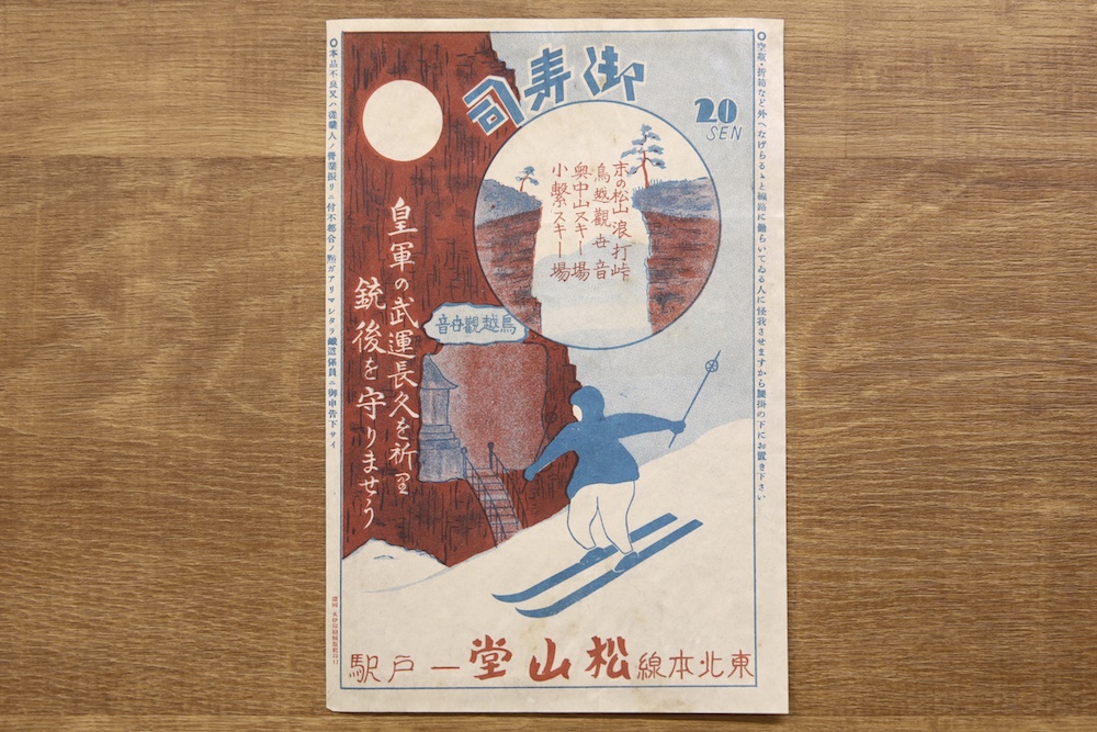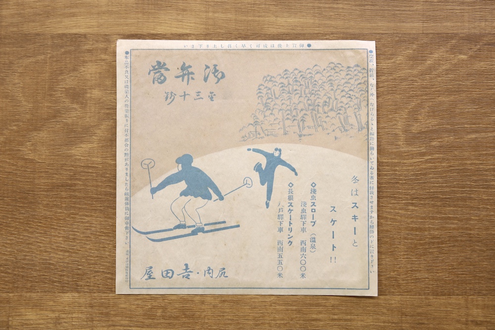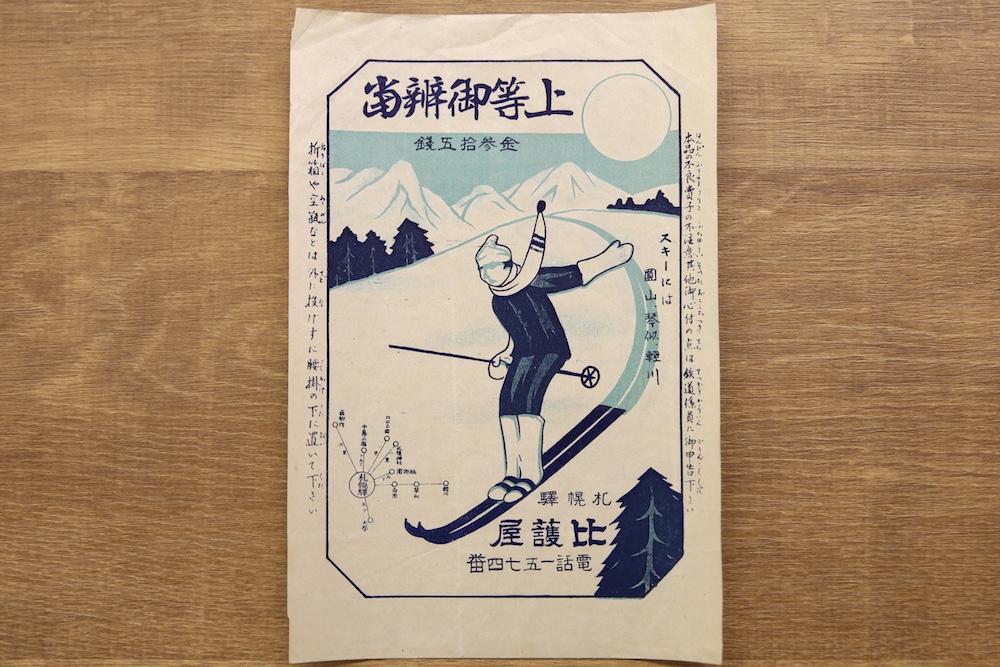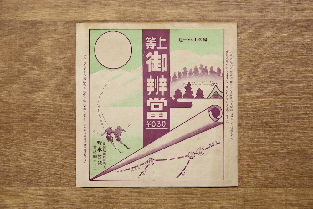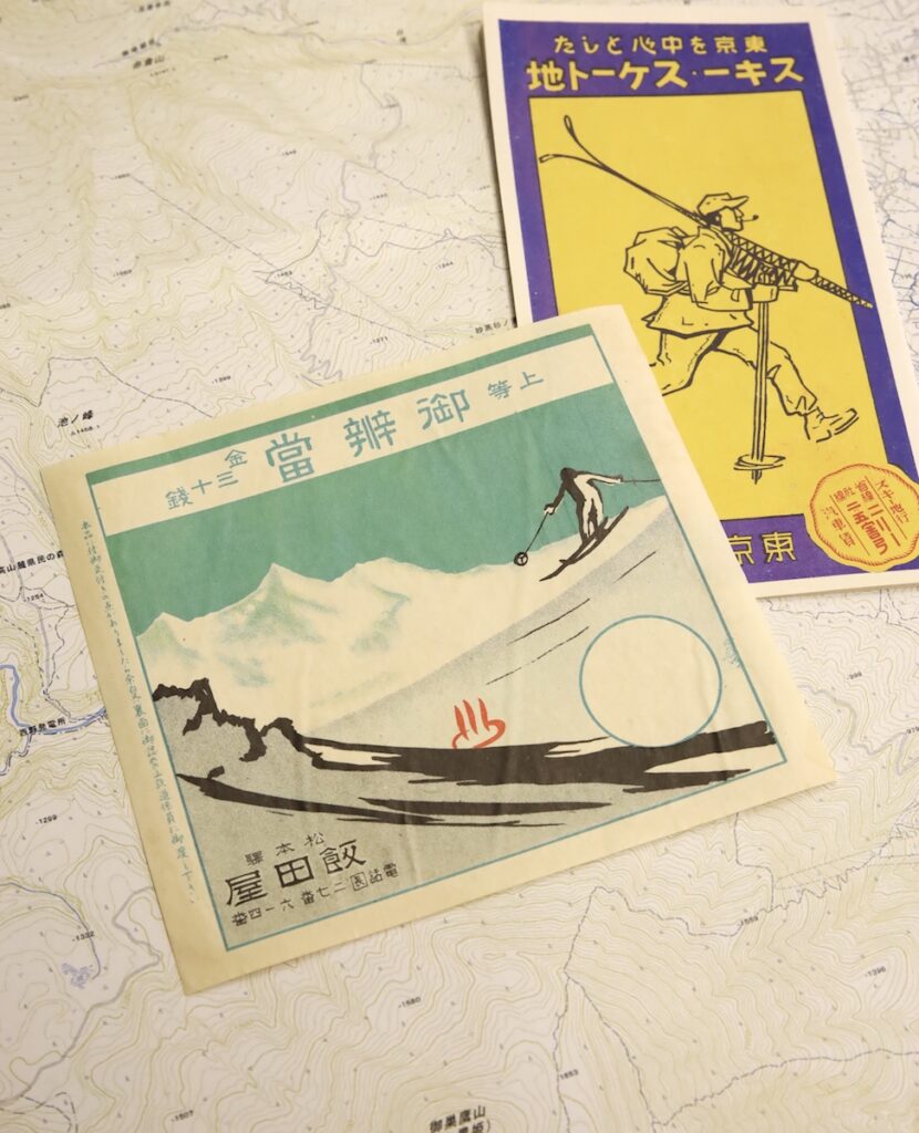 上ヶ島オサムさんの駅弁の掛け紙コレクションから、大正末~昭和戦前期のスキーのデザインの掛け紙を紹介します。ぜひお楽しみください。(画像をクリックすると拡大表示されます)